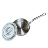 仕上げに重宝する浅型片手鍋(ソテー鍋)はソースの仕上げはもちろん、少人数の炒め煮料理に最適です。また、炊飯にも重宝します。本格的なプロユースの道具を是非一度お使いください。