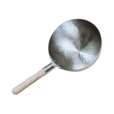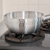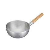 純度の高い国産アルミ材を使用した、アルミ製のボーズ鍋、用途は雪平鍋の様に煮炊きにも使えますが、注ぎ口が無く、底面は全くの球状なのが特徴で、その特殊な形状からお菓子造りの餡練りなどに用いられることも多いお鍋です。