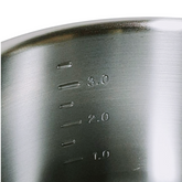 - メジャーのメモリが刻印: シェフからの提案を受け、計量カップを使わなくとも分量がわかるように改善。鍋の側面にメモリを刻印することで、調理の手間を省き、もっと使いやすい鍋に。