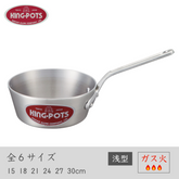 アルミ鍋 浅型片手鍋 テーパー付 [ガス] 15~36cm 全6サイズ / キングポット N-6