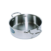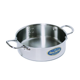 プロユースの厨房での必需品です。口径が広く浅めの形状で、熱が平均的に鍋全体に行き渡るため、蒸発が早く、煮詰め料理に向いています。