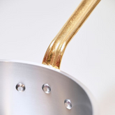 仕上げに重宝する浅型片手鍋(ソテー鍋)はソースの仕上げはもちろん、少人数の炒め煮料理に最適です。また、炊飯にも重宝します。本格的なプロユースの道具を是非一度お使いください。