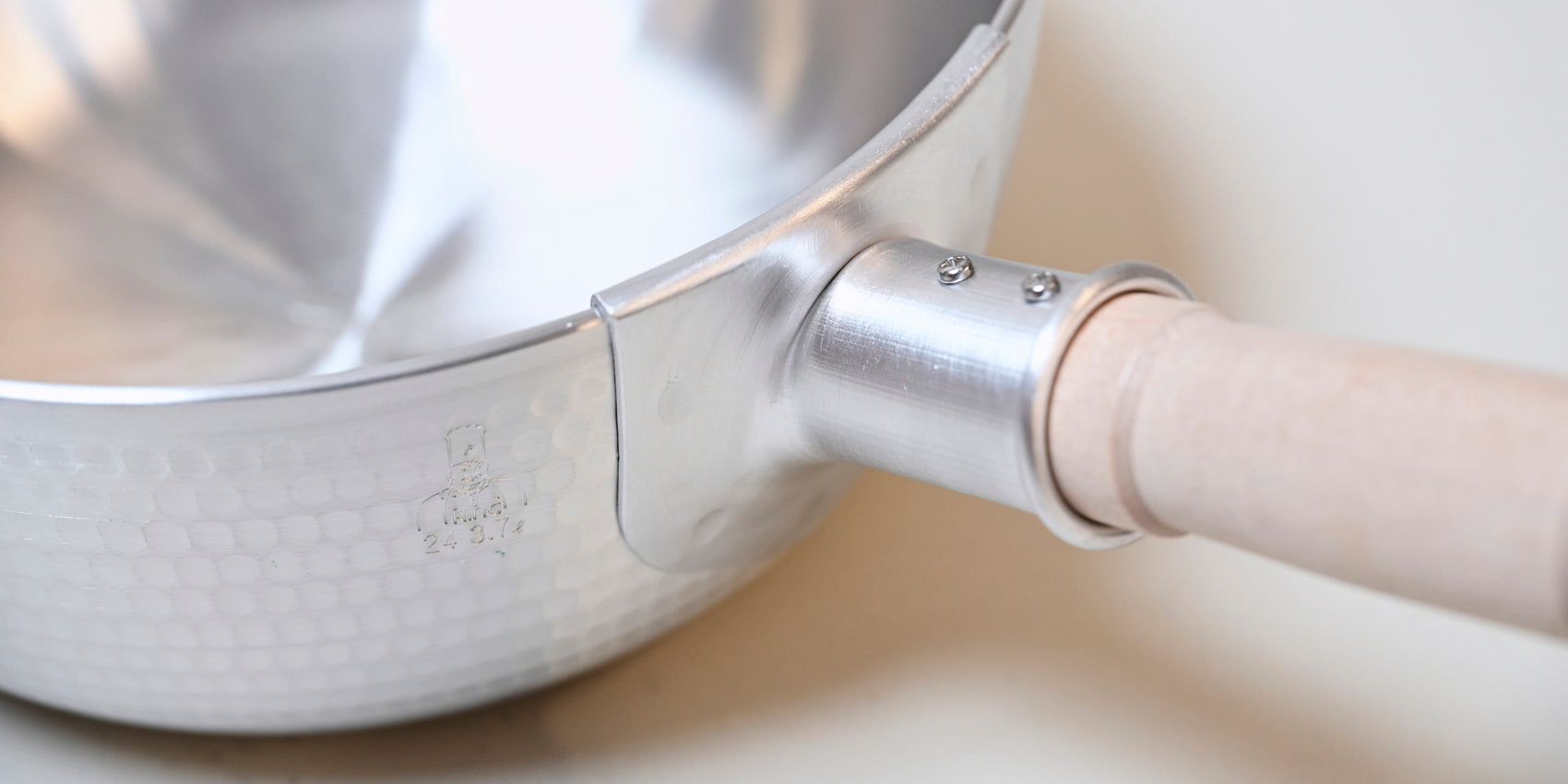 純度の高い国産アルミ材を使用した、アルミ製の極厚4.0㎜ 浅型片手鍋です。