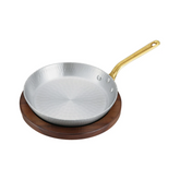 純度の高い国産アルミ材を使用した、アルミ製の極厚4.0㎜ パエリア鍋です。(木台付き)木台付きですのでテーブルに置いても見栄えが良く好評です。