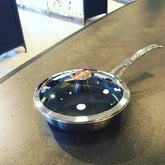 中尾アルミのヒット商品、キングフロンの性能はそのままに、ご家庭向けのコンパクトサイズの片手フライパン。(専用フタ付き)