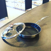 nakaoのキングフロンフライパンの材質には、高効率ステンレスと極厚アルミの合金を使用している為、ガスでのご使用はもちろん、 IH からのエネルギーも効率よく吸収して食材に伝導します。