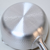 打出し加工: アルミを『打出』する事により鍋の強度が増し、通常品に比べ、1.5~1.8倍の頑丈な強度になります。プロの現場や長時間調理をされる等などに適しています。